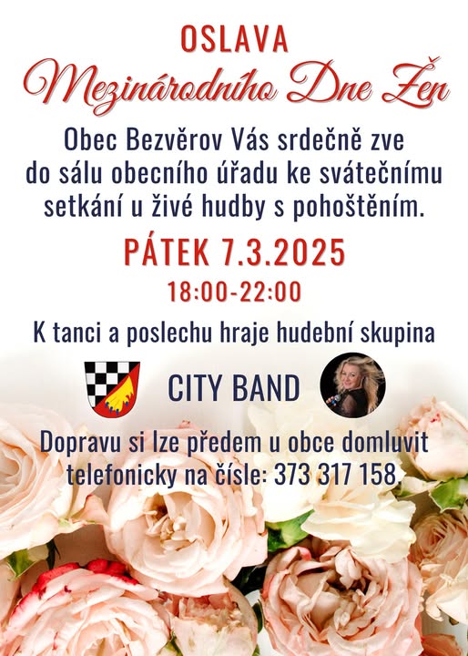 V pátek 7. března 2025 se od 18:00 budeme těšit na viděnou se všemi milými ženami z obcí na Bezvěrovsku při oslavě MDŽ!